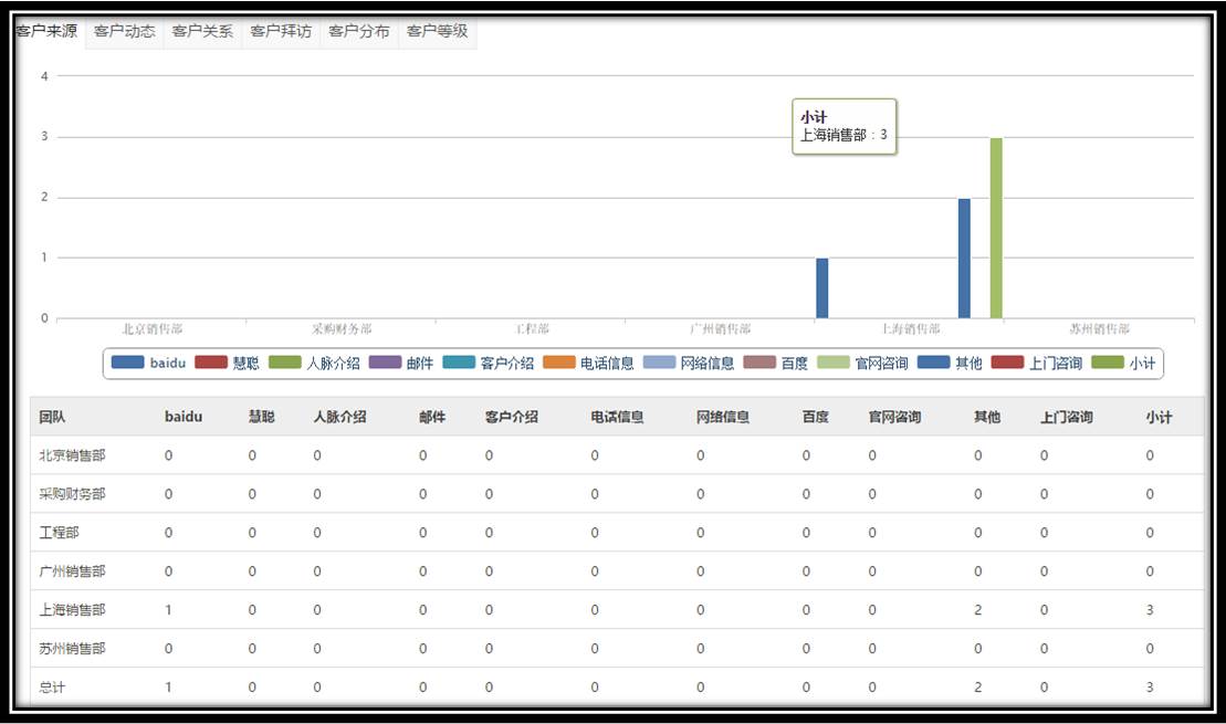 同时提供客户来源的数据精准分析,便于我们决策市场投放,将主要市场费用投入到主要来源渠道。