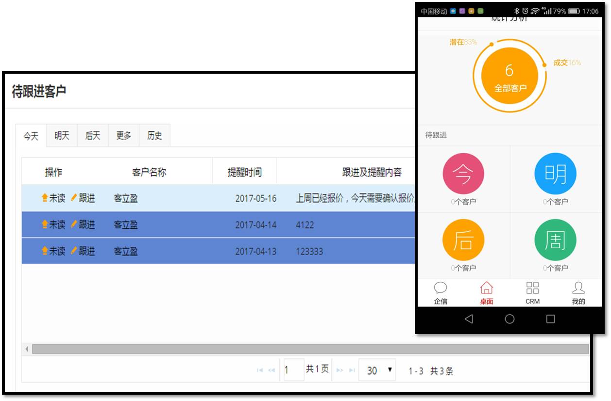 今天、明天 、后天、本周要跟进的客户,由系统来告诉我们。