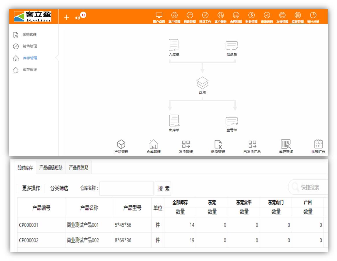 客立盈CRM,提供“库存管理”模块,用户可依据实际业务需求进行选择;